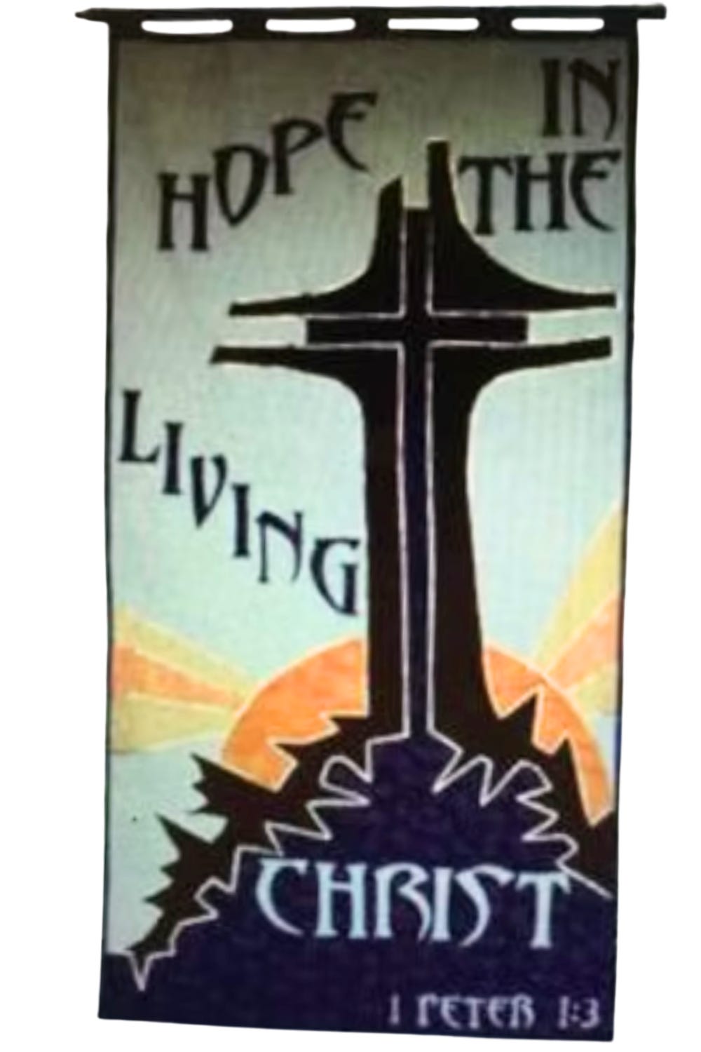 Thankfully, I found yet another of the church banners I created back in the early 80’s for the church we were members of at the time: First Baptist Church of Savoy, in Savoy, IL.