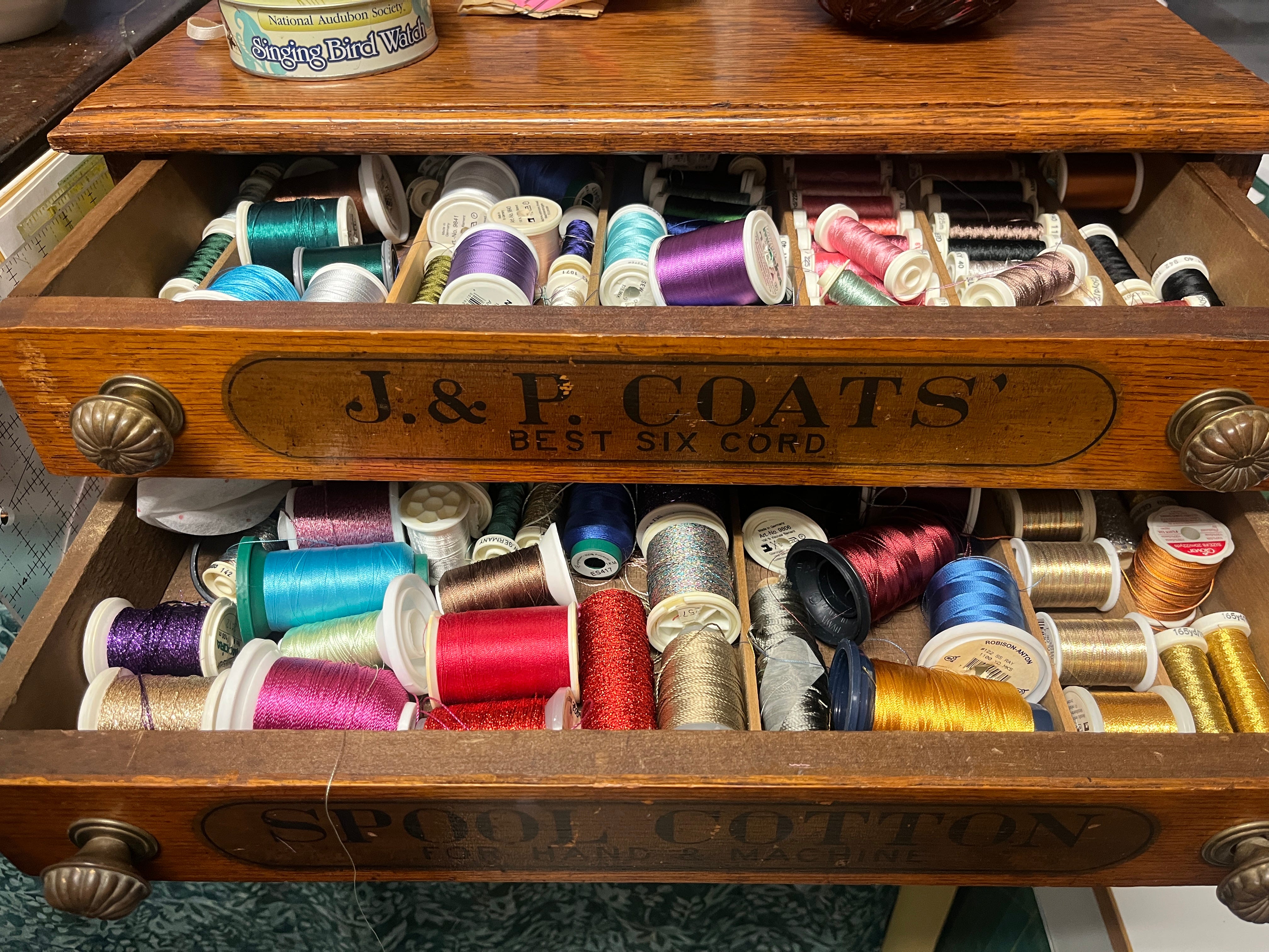 Here’s my ‘collection’ in this valued antique thread cabinet - which I covet!